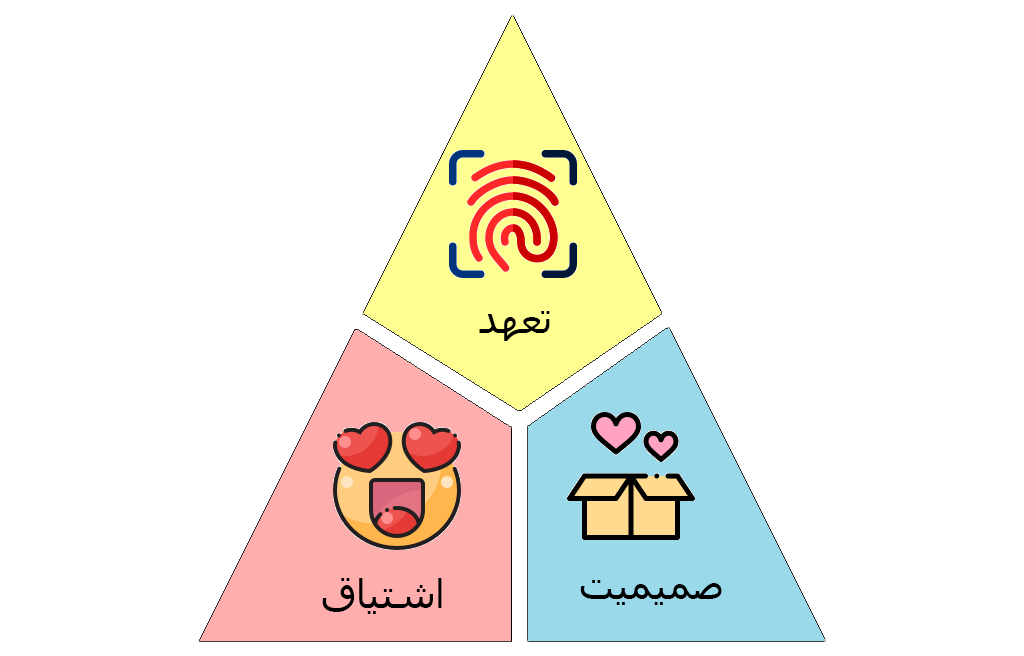 طبق نظریه استرنبرگ عشق از سه ضلع : شهوت (اشتیاق) ، صمیمیت و تعهد تشکیل شده است.