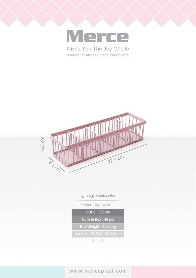 نظم دهنده نرده ای از برند بسیار با کیفیت مرسه از جنس پلاستیک با قیمت مناسب در مجموعه 3 عددی می باشد از کاربردهای سبد نظم دهنده میتوان به نظم دادن به داخل کابینت ها ، یخچال و کمد ها ، میز های آرایشی و … اشاره کرد.