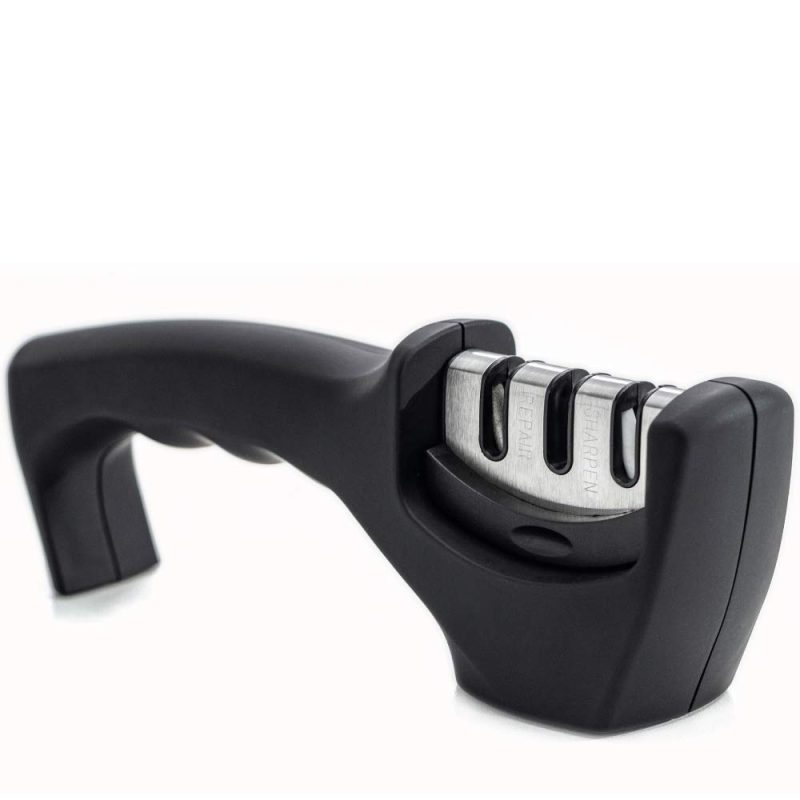 چاقو تیزکن 3 تیغه یکی از مهمترین و پرکاربردترین ابزار مورد استفاده در هر آشپزخانه ای است. چاقوها بعد از چند ماه استفاده مداوم و به مرور زمان کند شده و دیگر کارایی لازم جهت خرد کردن مواد غذایی را ندارند بنابراین نیاز به تیز کردن دارند. چاقو تیزکن شارپنر با دارا بودن 3 تیغه مجزا امکان تیز کردن ساطور و انواع چاقو با هر ابعادی را امکان پذیر میکند و طراحی منحصر به فرد
