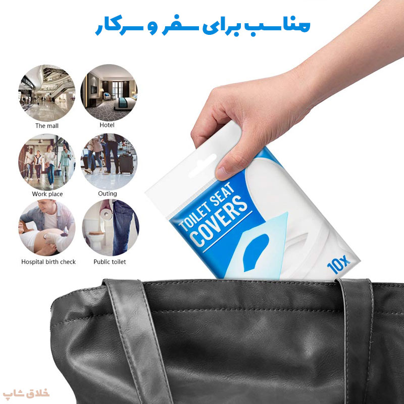 کاور توالت فرنگی مسافرتی 10 عددی؛ تمیز، ضد نشت و قابل فلاش برای استفاده راحت در سفر و بیرون از خانه 🚽✨🧳