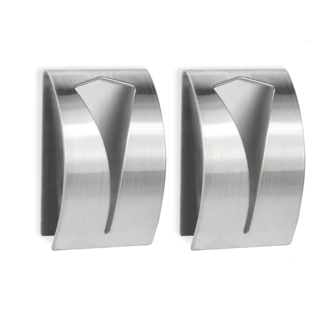 - [طراحی ویژه] قلاب حوله استیل ضد زنگ V شکل می تواند حوله را در موقعیت مناسب ثابت کند. حوله را از بالا در فضای V شکل قرار دهید و آویزان کنید. اگر باید از حوله استفاده کنید، آن را به پایین بکشید. لبه های آن صاف است، بنابراین به حوله گیر نمی کند و به حوله آسیب نمی رساند.
