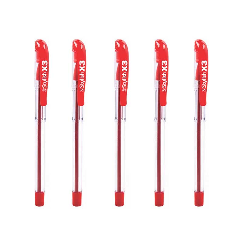 خودکار قرمز استایلیش (مجموعه 5 عددی) مدل X3 نوک 0.7 دهم