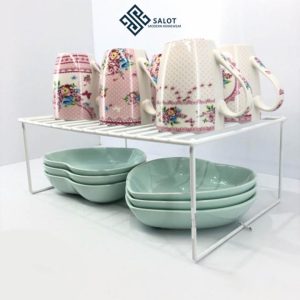 ابعاد این راف یک طبقه به طول 31 و عرض 27 و ارتفاع پایه 15 سانتی متر می باشد که به راحتی درون کابینت ها و بوفه ها جای میگیرد.