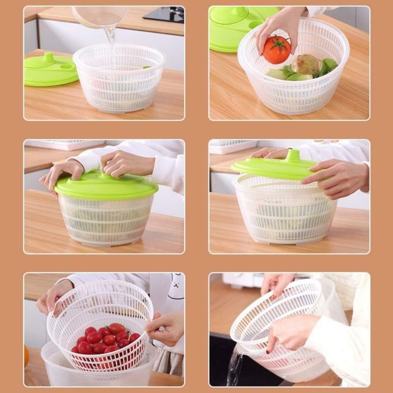 این محصول به شکلی مکانیکی می تواند آب باقیمانده سبزیجات شسته شده را به سرعت گرفته و با خشک کردن سبزی ماندگاری آن را بیشتر کند و نیاز به دستمال برای پهن کردن سبزی نداشته باشید.سبد آبگیری سبزی جات برای شستن و خشک کردن سبزیجات، گیاهان، کاهو یا میوه های کوچک ایده آل است.