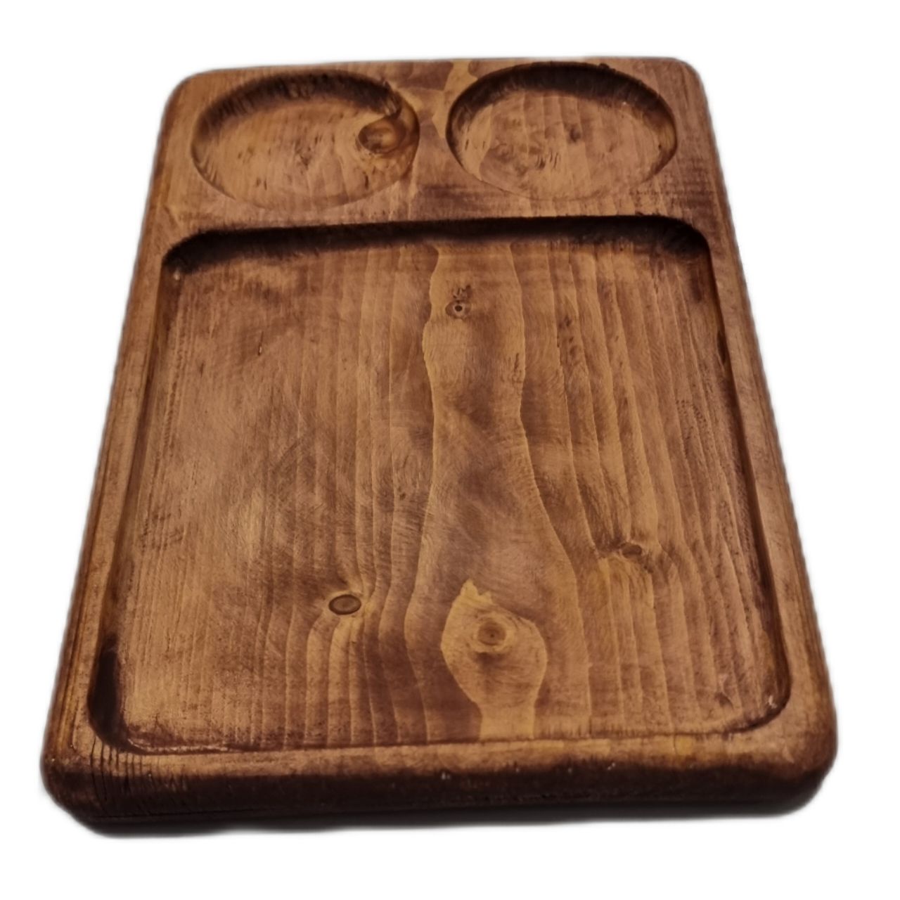 سینی چوبی پذیرایی 2 نفره با طرحی بی نظیر و زیبا مناسب برای پذیرایی دو نفره با داشتن دو قسمت مجزا برای لیوان چای خوری یا آبمیوه و یک قسمت مربعی بزرگ تر برای قرار دادن قندان یا شکلات و تنقلات می باشد.