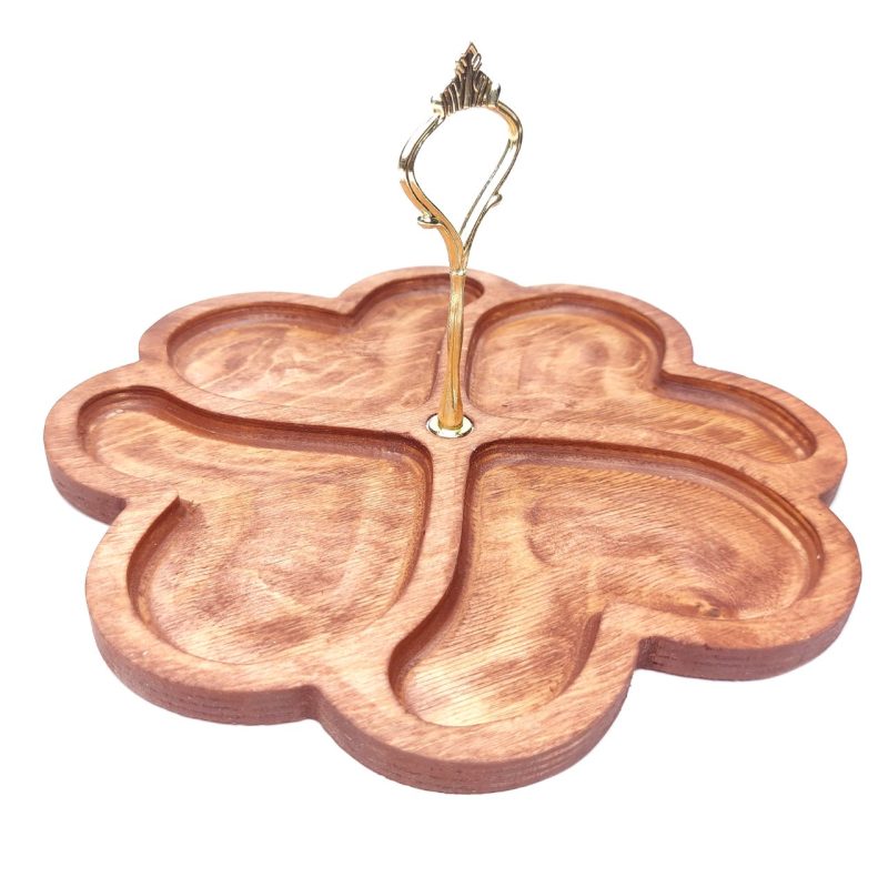 شیرینی خوری چوبی دسته دار یک طبقه 4 قسمته از جنس چوب و ترکیب آن با دسته پلاستیکی با کیفیت، کار بسیار شیک و زیبا جهت پذیرایی شیرینی و شکلات با ظاهری بسیار دلنشین، شیک و ساده.