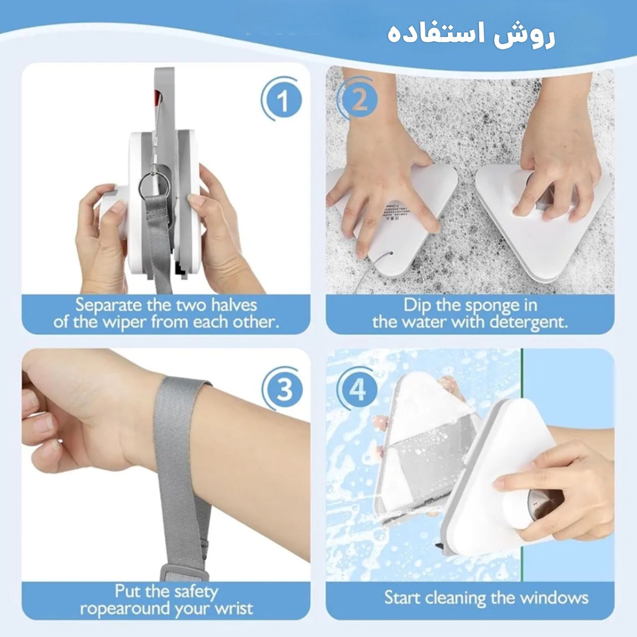 شیشه پاک کن مغناطیسی دوجداره با جدیدترین طراحی آهنربای دوطرفه قوی ، این شیشه شور دوجداره مگنتی به شما کمک میکند که بدون خطر ایستادن در کنار پنجره باز و ارتفاع، شیشه های آپارتمان خود را از دو طرف تمیز کنید. این شیشه پاک کن مگنتی بهترین گزینه برای تمیز کردن شیشههای ساختمان های بلند است.