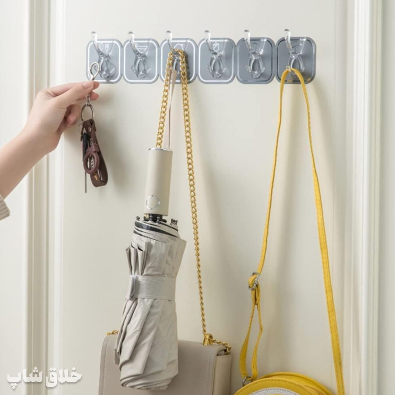 قلاب آویز چسبی 6 ردیف جالباسی پشت چسبدار