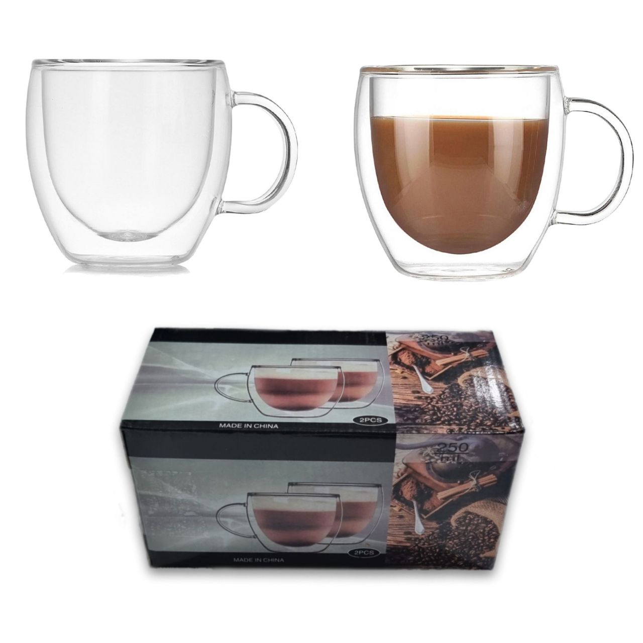 لیوان دوجداره دسته دار 2 عددی مدل پیرکس 250 میل با طراحی خاص و تماشایی اش یکی از جذاب ترین محصولات و خیره کننده ترین لیوان هایی است که تابحال دیده اید.