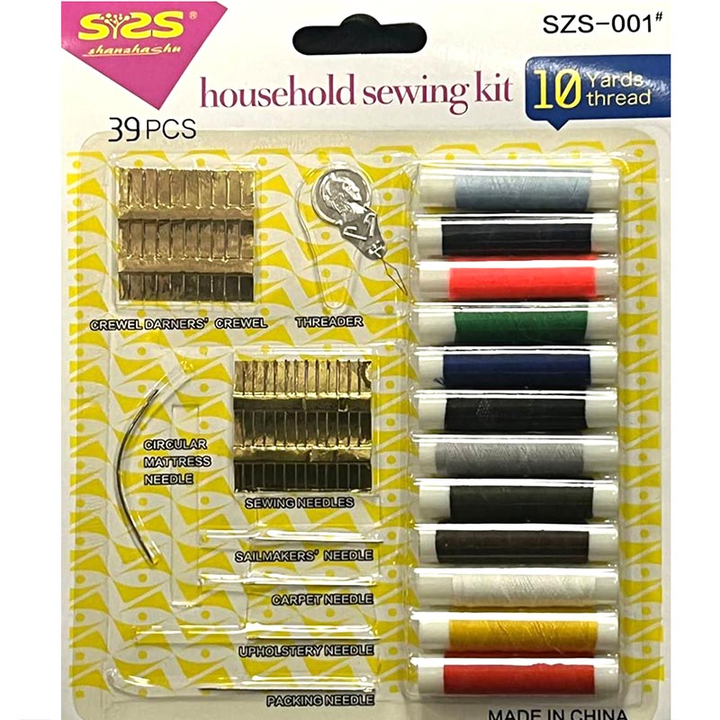 ست مجموعه نخ و سوزن 39 تکه household sewing kit یکی از کیت های پرکاربرد خیاطی است که هر نوع سوزن را درون خود داشته و در کنار آن 12 قرقره نخ در رنگ های مختلف روشن و تیره را موجود داشته تا نیاز به هر رنگ نخی را رفع کند.