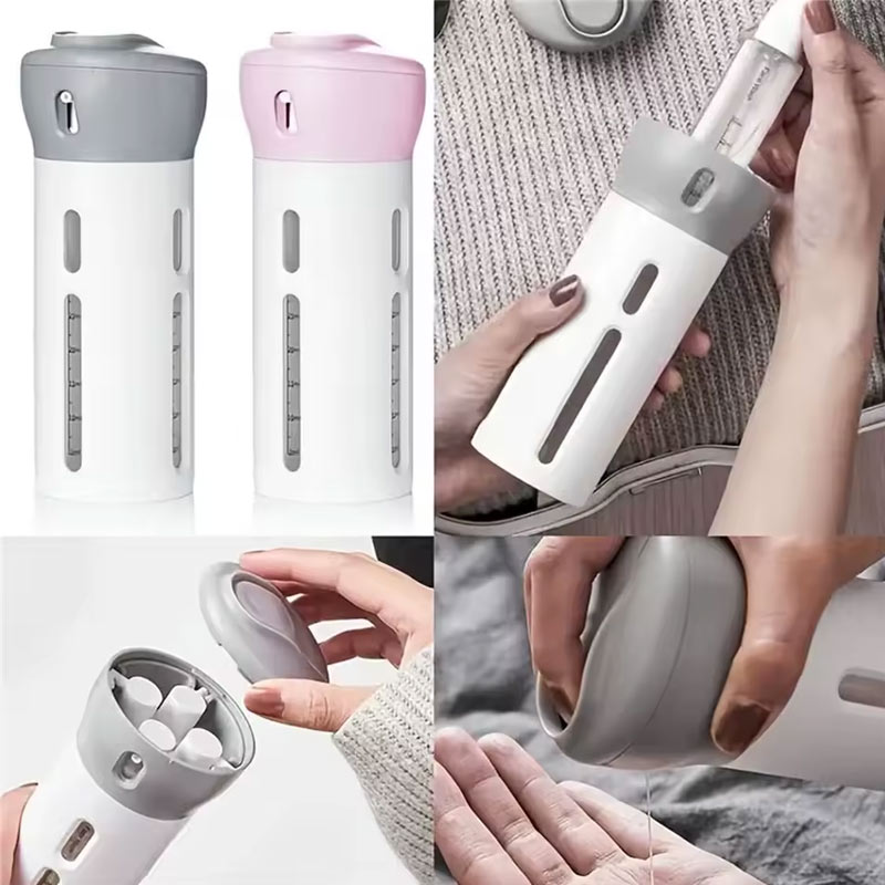 پک 4 بطری مسافرتی هوشمند 🧴✨ دیگه لازم نیست تو سفر و بیرون همه شامپو و لوسیون و نرم کننده و … با خودت ببری! این پک همه رو تو خودش جا میده کافیه هرچی لازم داری رو تو مخازنش پر کنی و با خودت ببری.