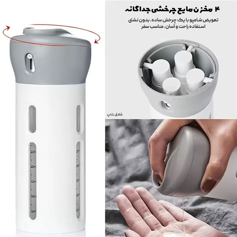 ضدنشت، قابل‌پرکردن، جمع‌وجور و مناسب نگهداری شامپو، ژل، لوسیون و… همراه حرفه‌ای‌ت توی سفر! 🌍✈️