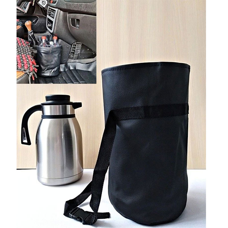 کیف فلاسک خودرو و کیسه زباله چرمی؛ مرتب و شیک، نگهداری آسان فلاسک چای برای راننده ها یا بطری و زباله در ماشین 🚗👜♻️